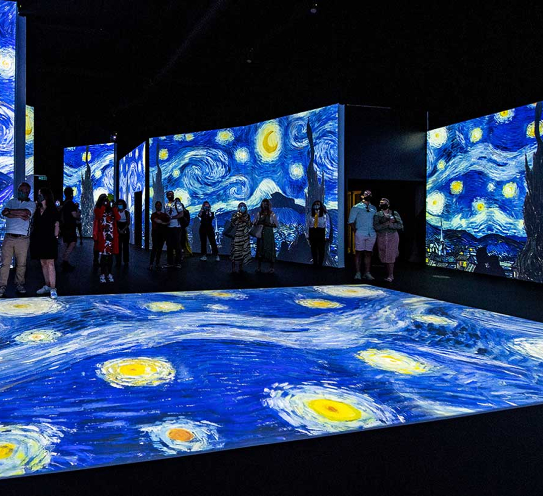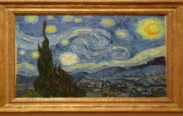 Retrouvée dans une collection numérique supprimée par la Censure Esthétique, La Nuit étoilée scintille à nouveau sur les Contacts. Ses tourbillons d’azur et d’or semblent vivants : chaque point de lumière défie l’uniformité chromatique imposée par le régime. Dans les quartiers privés de couleur, les rebelles la projettent sur les murs, comme une fenêtre illégale ouverte sur la beauté insoumise du monde nocturne.